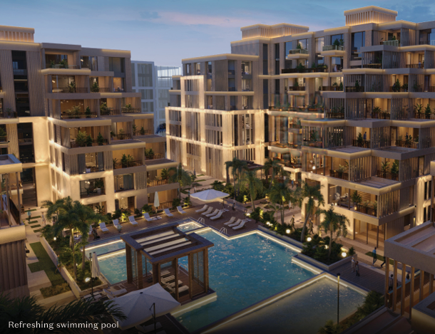 Arisha Terraces, a unique residential development nestled in the heart of Dubai Studio City. This exquisite community features four low-rise buildings, offering a selection of 414 apartments with 122 distinct layouts that perfectly blend comfort, luxury, and nature.