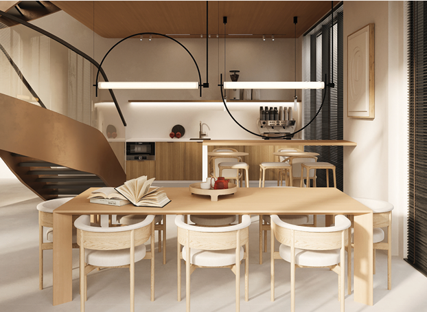- Community Center: Includes a movie cinema, co-working space, library, and shared kitchen for social and productive activities.
